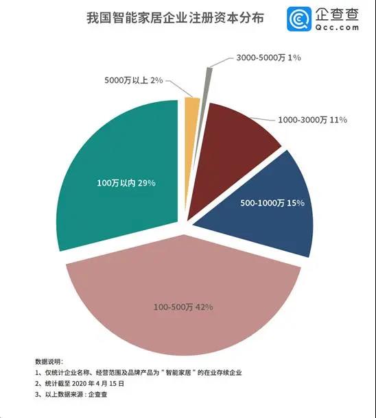 智能家居如此龐大的市場(chǎng)需求和商業(yè)布局,迄今為止整個(gè)市場(chǎng)還沒(méi)有一家能夠形成較大的規(guī)模。從注冊(cè)資本上看,涉足智能家居的企業(yè)大部分注冊(cè)資金在500萬(wàn)以下,注冊(cè)資金在5000萬(wàn)以上的企業(yè)僅為2%。