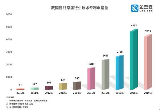 潛力巨大的“藍(lán)海”市場(chǎng)早已廠商云集,智能家居行業(yè)技術(shù)專利申請(qǐng)量迅速攀升。企查查數(shù)據(jù)顯示,我國(guó)智能家居相關(guān)專利申請(qǐng)總量早已破萬(wàn),2015年開(kāi)始我國(guó)智能家居行業(yè)技術(shù)邁入快速發(fā)展期,2018年達(dá)到巔峰,數(shù)量達(dá)4863件,較2017年同比增長(zhǎng)了76%,2019年專利申請(qǐng)數(shù)稍減。由此可見(jiàn),智能家居市場(chǎng)競(jìng)爭(zhēng)較為激烈,各路玩家步伐急促。